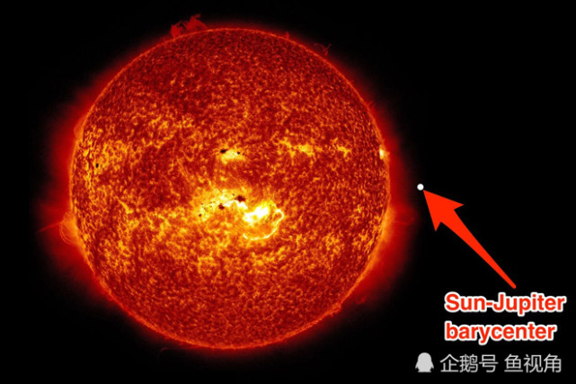 不过太阳有时会离质心时近时远,主要的原因是因为木星的拉扯。虽然太阳占太阳系总质量的99.8%,但剩下的0.2%几乎都是木星质量。由于木星质量为太阳的千分之一,因此质心与木星的距离,为与太阳距离的约一千倍,质心位于太阳表面之外。当木星与太阳以约 12 年互绕一圈,太阳绕着质心运动了约150万公里。